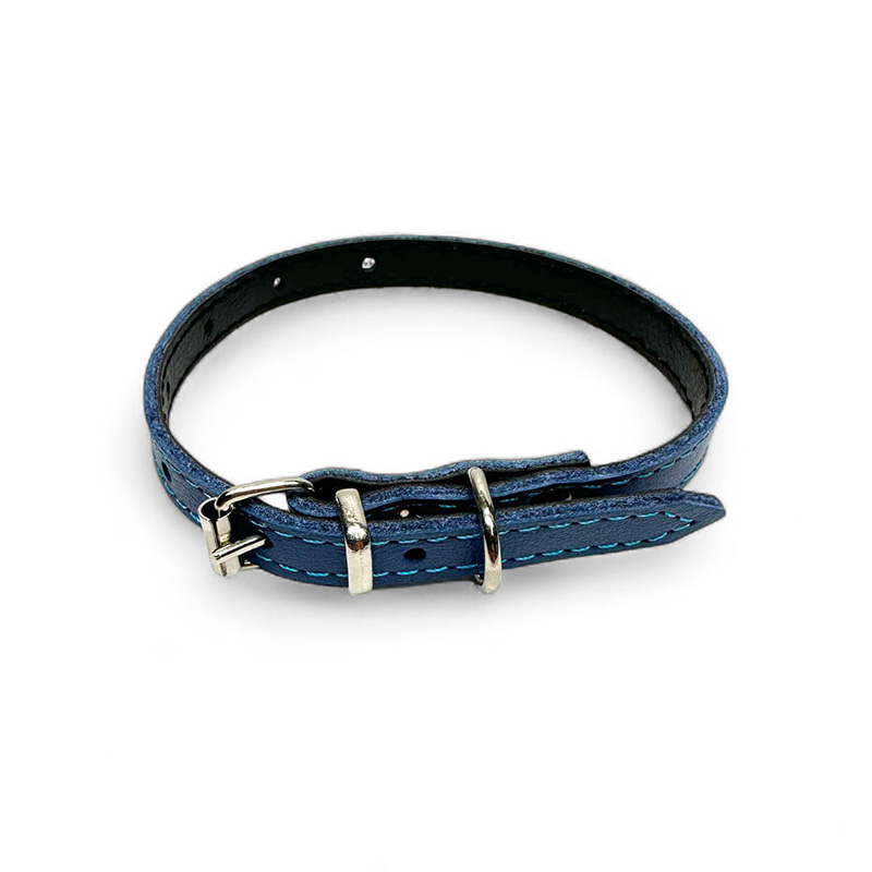 Fleksas mėlynas, odinis antkaklis mažų veislių šunims, 25 cm