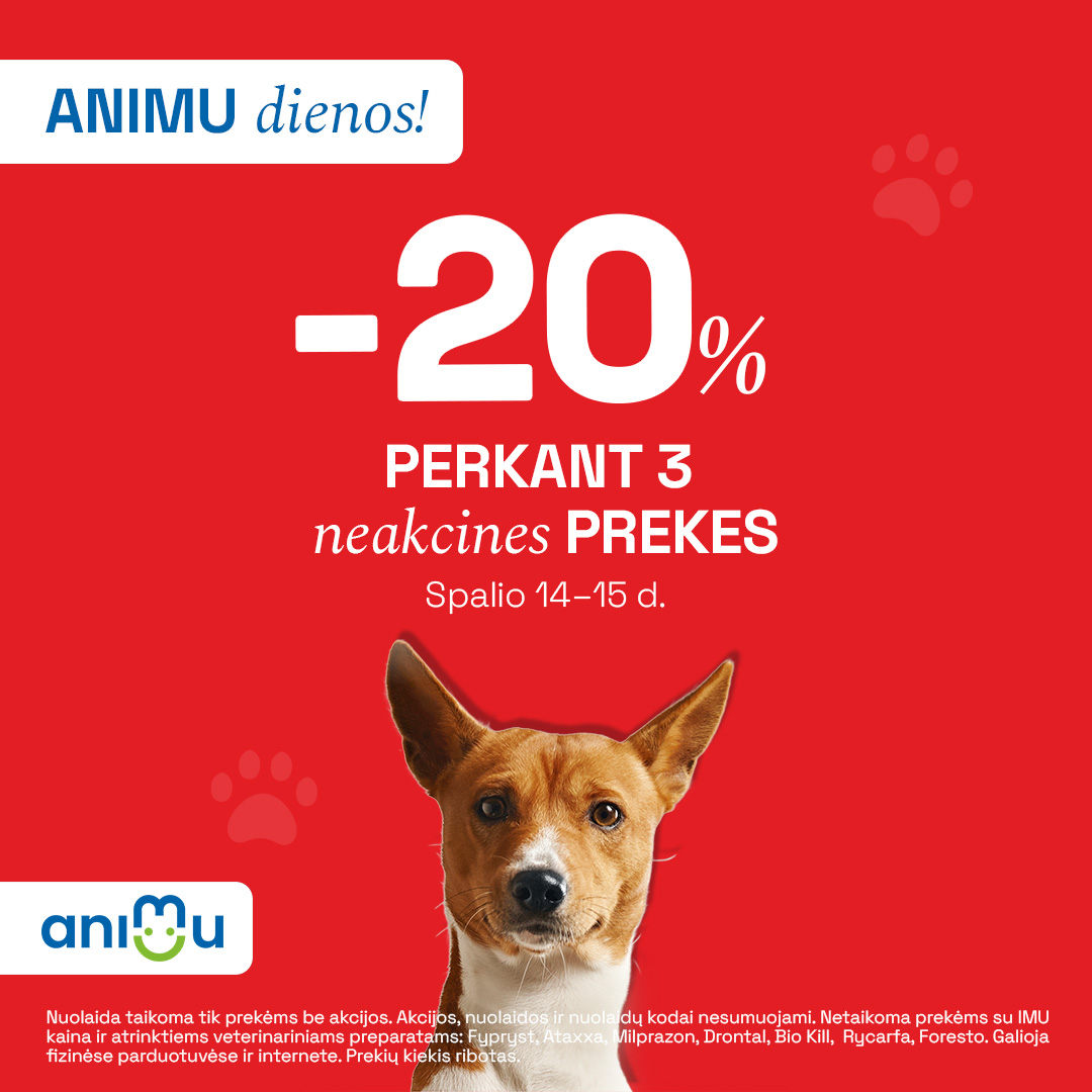 👉 Galioja prekėms be akcijos, išskyrus prekes su IMU kaina ir atrinktus veterinarinius preparatus.