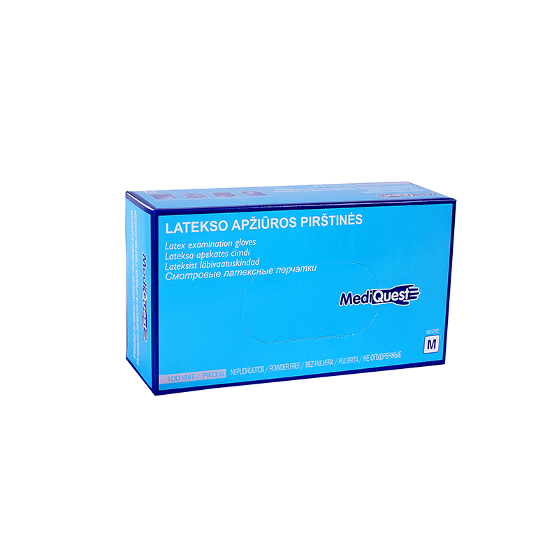 MediQuest lateksinės pirštinės be pudros, S, 100 vnt.