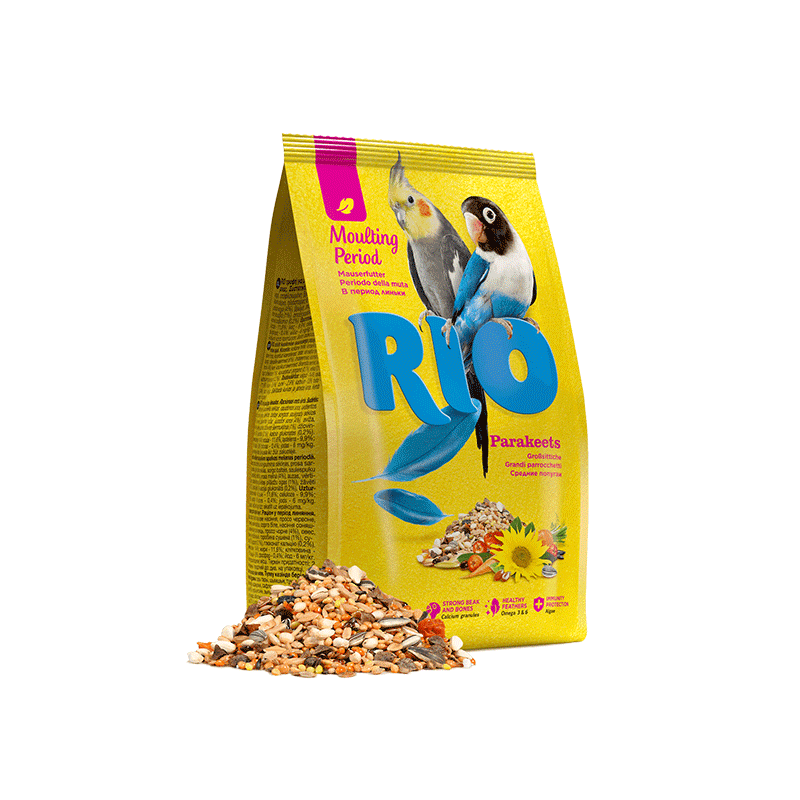 RIO Moulting period feed for Parakeets – lesalas ilgauodegėms papūgėlėms šėrimosi laikotarpiu.