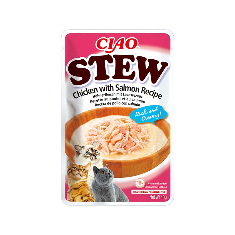 Ciao Stew – vištienos ir lašišų mėsos troškinys skanėstas katėms.