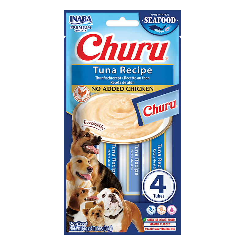 Churu skanėstai šunims, kurių sudėtyje mažai kalorijų, gausu drėgmės ir nėra grūdų bei vištienos. Gardus kreminis užkandis, puikiai tinkantis treniruočių metu, papildams paslėpti ar sausam pašarui pagardinti.