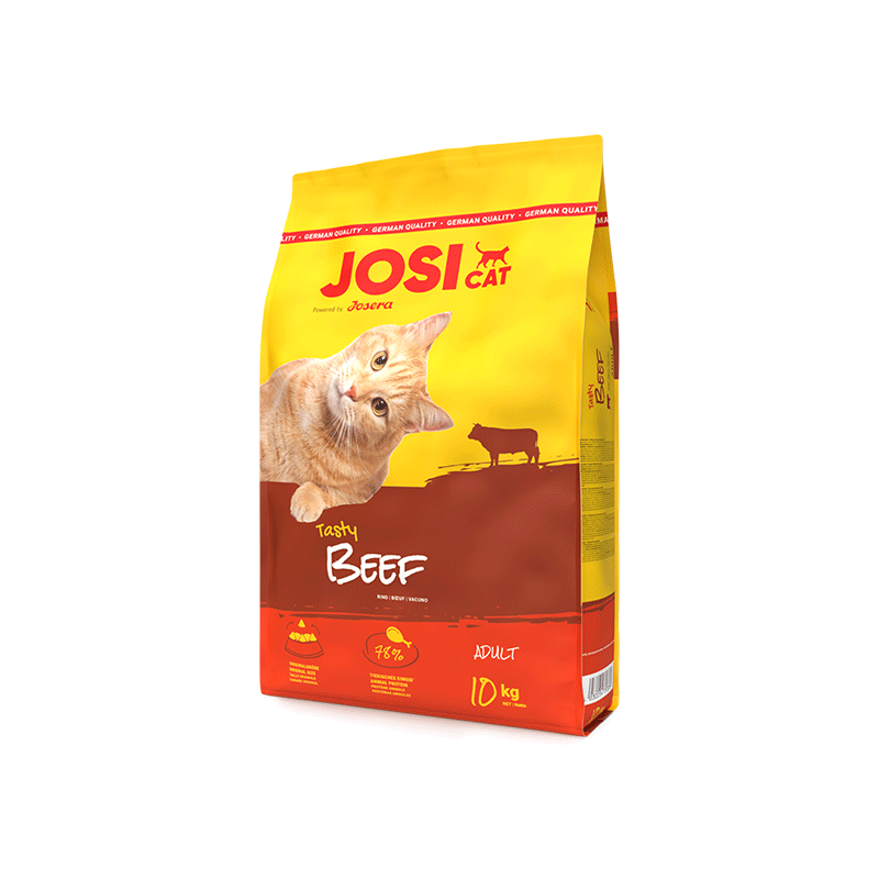 JosiCat Tasty Beef, 10 kg – visavertis kačių maistas su jautiena, idealiai tinkantis suaugusioms lauko ir vidaus katėms.