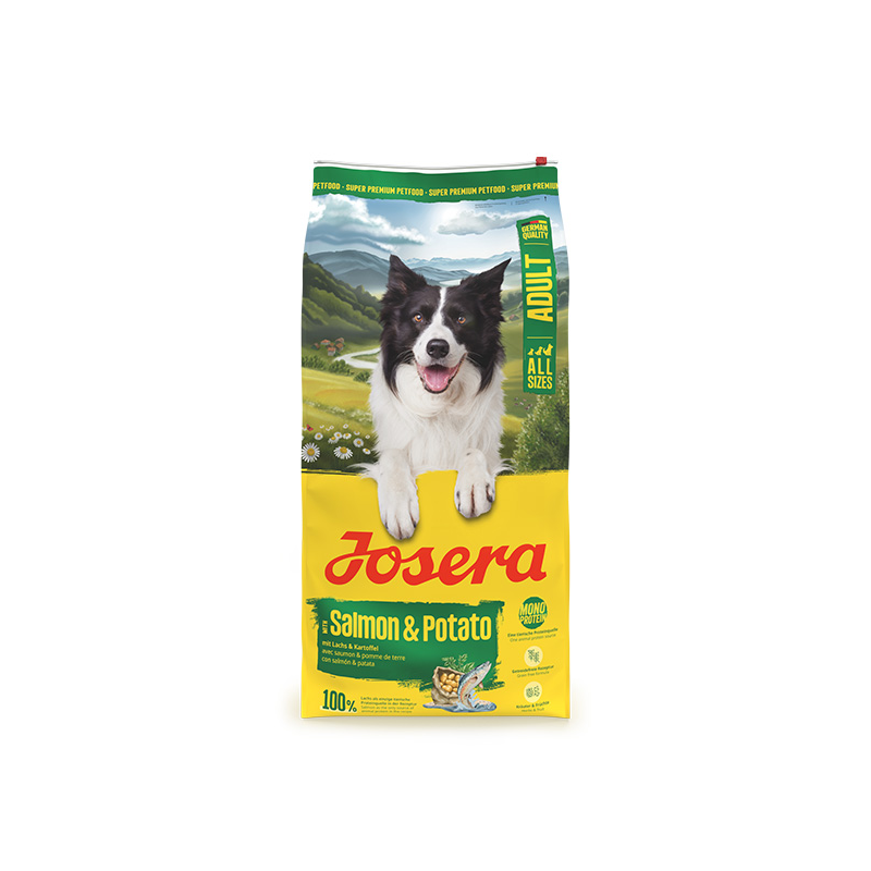 Josera sausas maistas suaugusiems, įvairaus dydžio šunims su lašišų mėsa ir bulvėmis, puikiai tinkantis ir vyresnio amžiaus šunims.